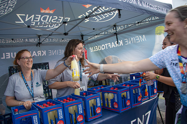Unsere Helfer an der Getränkeausgabe in der Zielverpflegung beim M-net Firmenlauf Augsburg